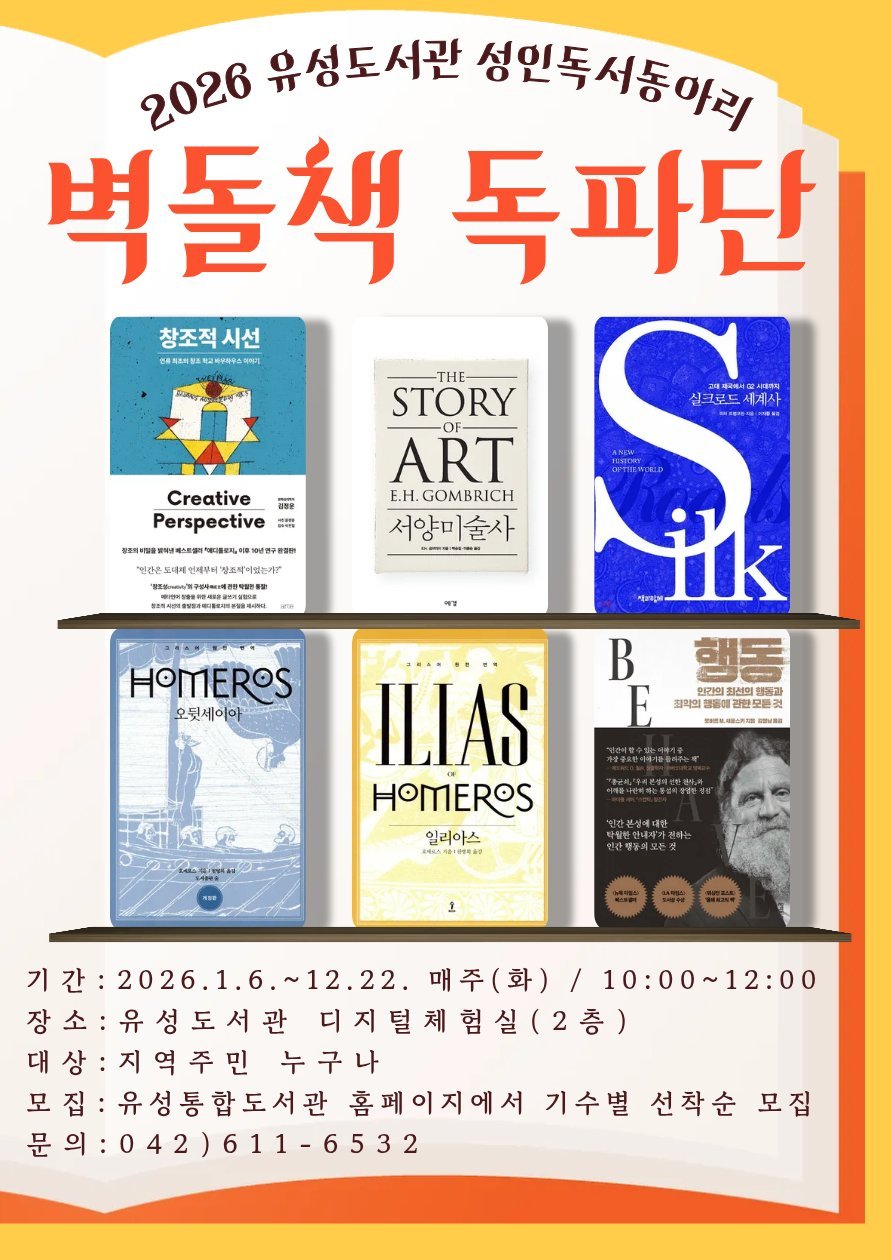 [Ytv영상스토리] 대전 유성구는 유성도서관에서 깊이 있는 독서 경험과 완독의 성취감을 제공하기 위한 심화 독서동아리 ‘2026 벽돌책 독파단’을 운영한다.