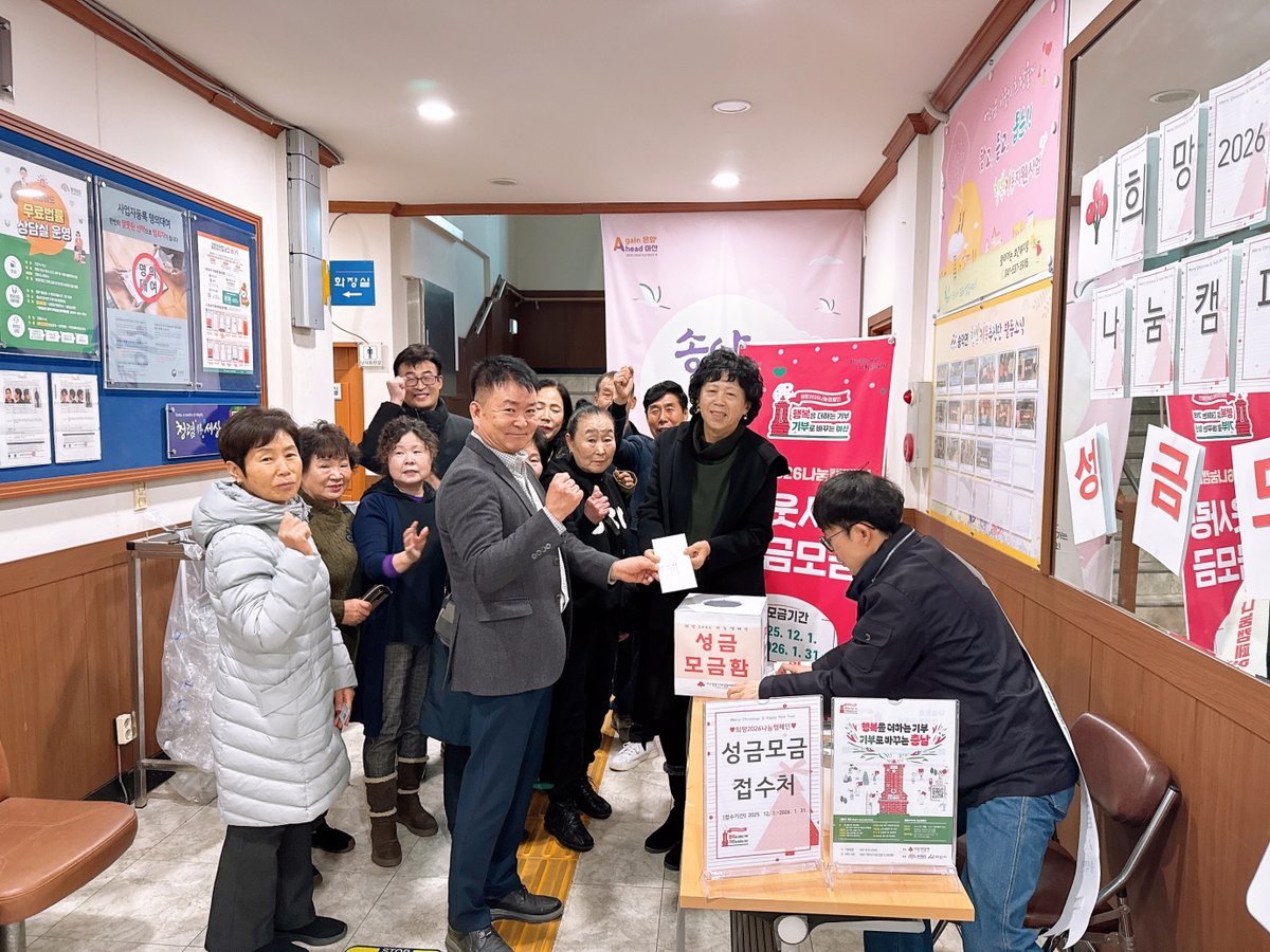 [Ytv영상스토리] 아산시 송악면은 지난 19일 송악면 행정복지센터 1층로비에서 희망2026 나눔캠페인 성금 집중모금 행사를 진행했다.