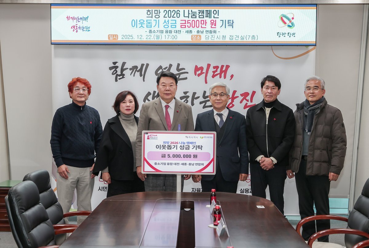 오성환 당진시장은 “지역경제의 한 축을 담당하는 중소기업융합 대전·세종·충남 연합회의 따뜻한 나눔에 깊이 감사드린다”며 “기탁해 주신 성금은 도움이 필요한 이웃들에게 소중히 전달하겠다”고 감사의 뜻을 표했다.
