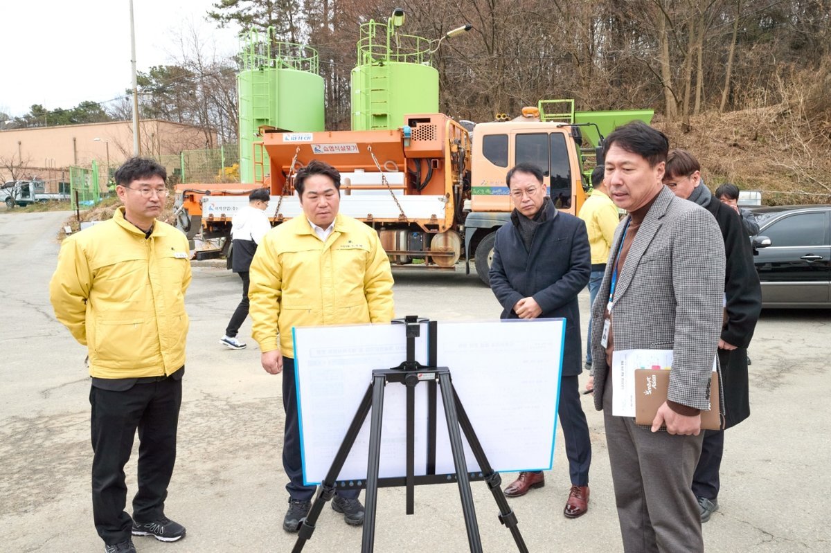 오 시장은 먼저 용화동 도로보수 창고를 찾아 제설 장비와 자재 비축 현황을 살피고, 장비 운용 계획을 점검했다.