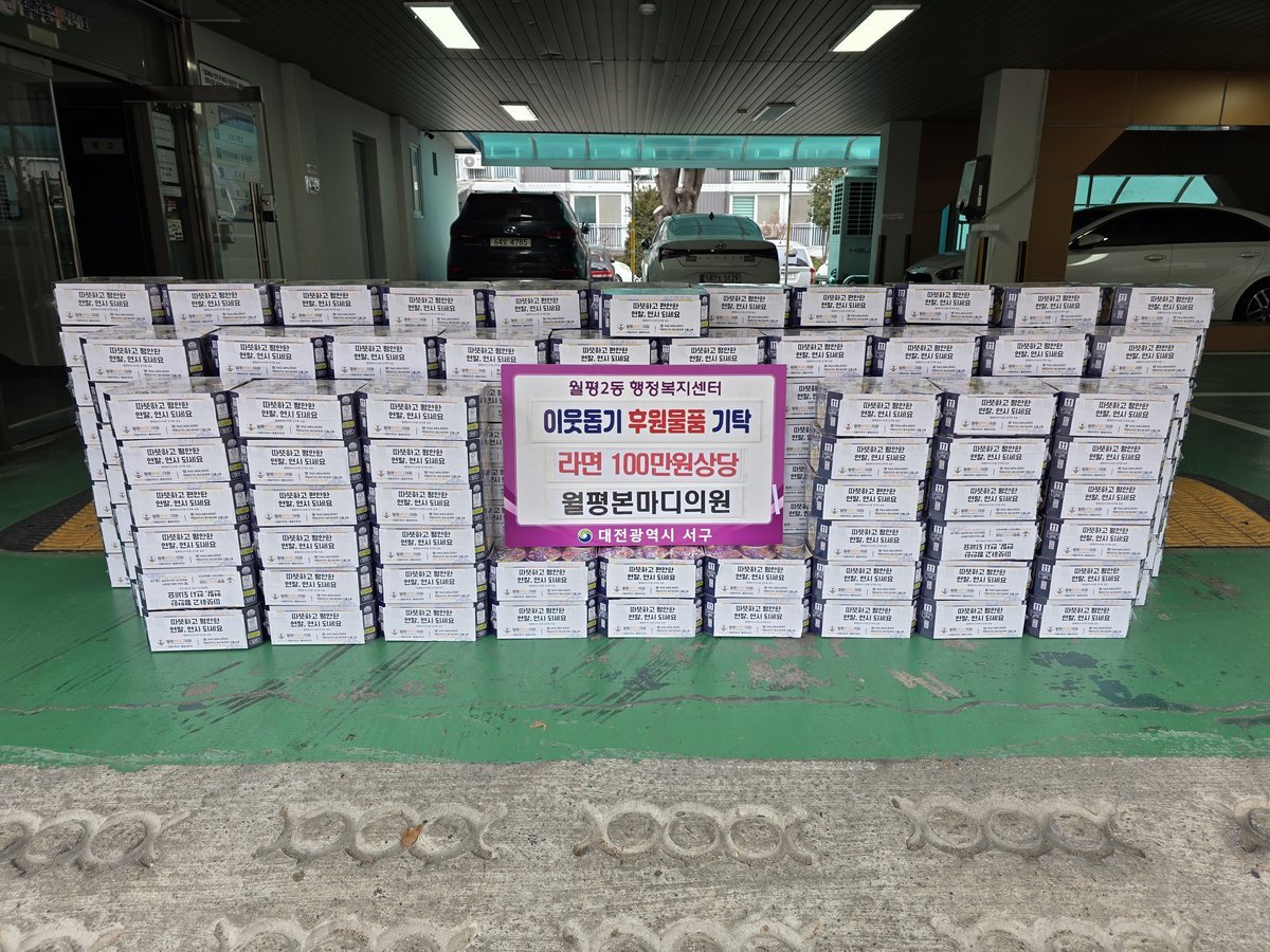 [Ytv영상스토리] 대전 서구 월평2동 행정복지센터는 23일 월평동 본마디의원으로부터 어려운 이웃들을 위한 컵라면을 기탁받았다.