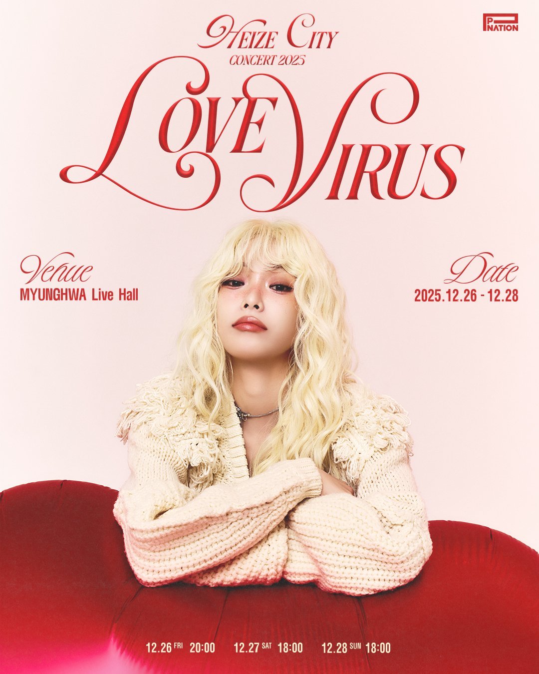 헤이즈는 오는 26일부터 28일까지 서울 영등포구 명화라이브홀에서 ‘2025 Heize Concert [Heize City : LOVE VIRUS]’를 개최한다.