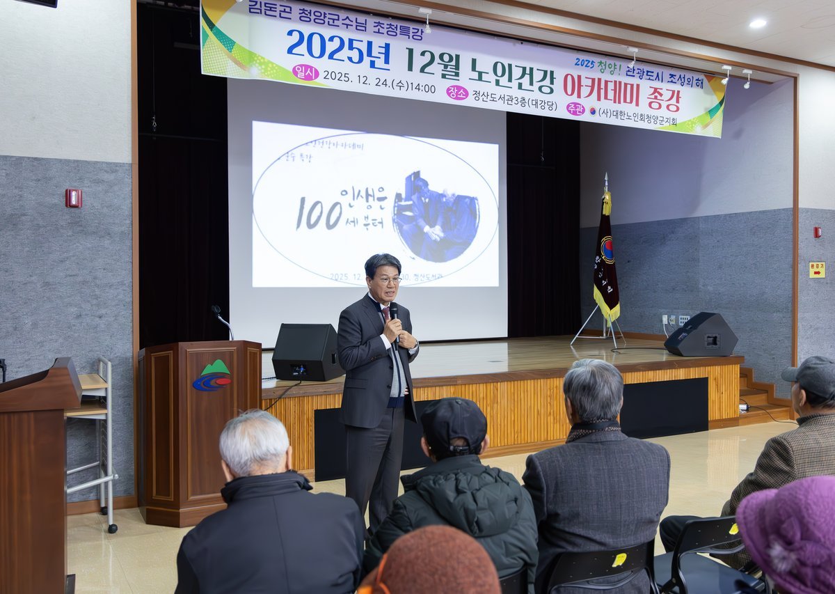 [Ytv영상스토리] 대한노인회 청양군지회는 지난 24일 정산도서관 대강당에서 정산, 목, 청남, 장평 프로그램 참여자 및 관계자 등 100여 명이 참석한 가운데 ‘노인건강아카데미 종강식’을 성황리에 개최했다.