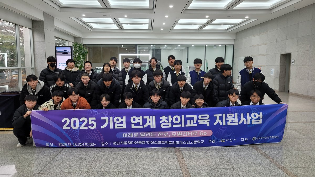 [Ytv영상스토리] 아산스마트팩토리마이스터고 는 23일 현대자동차 아산공장에서 2 학년 68명 학생들이 “선문대학교 2025년 기업 연계 창의 교육 지원사업 ”의 일환으로 추진되는 「 현대자동차 아산공장 견학 및 ‘미래로 달리는 진로, 모빌리티로 Go!’모빌리티 진로 교육 」 프로그램에 참여했다고 전했다.