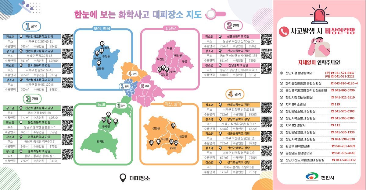 화학사고 대피장소 안내지도는 천안시 누리집에서도 확인할 수 있다.