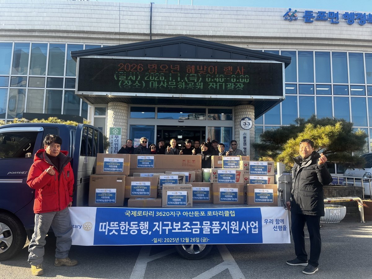 이모완 둔포면장은 “지역의 미래를 이끌어 갈 학생들과 어려운 이웃을 위한 지원은 공동체가 함께 만들어 가야 할 가치”라며 “지속적인 나눔으로 따뜻한 동행을 실천하고 있는 둔포로타리클럽의 뜻깊은 활동에 감사드린다”고 전했다.