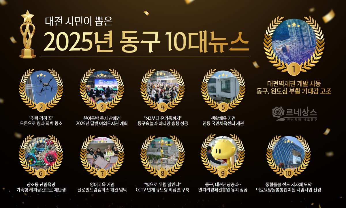 [Ytv영상스토리] 대전 동구는 주민들이 직접 참여하고 동구GPT 분석을 통해 선정한 ‘2025년 동구 10대 뉴스’투표 결과, ‘대전역세권 개발 시동’이 압도적인 1위를 차지했다고 29일 밝혔다.