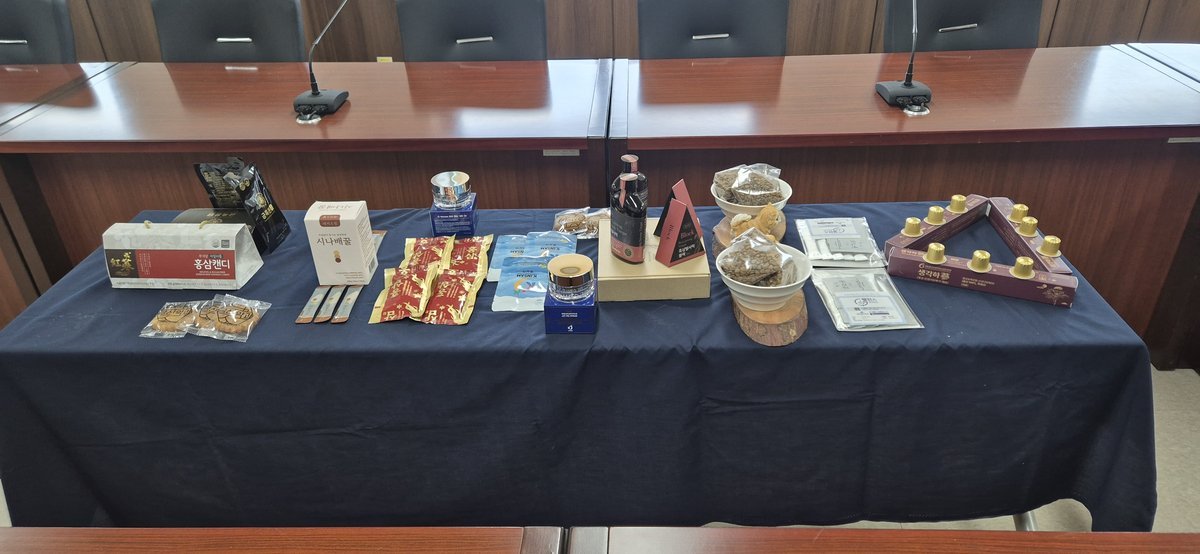 지난 23일 금산인삼약초산업진흥원에서 열린 지역식품표준화사업 연구 성과 활용 관리 및 신규 사업 추진보고회 및 개발 제품들