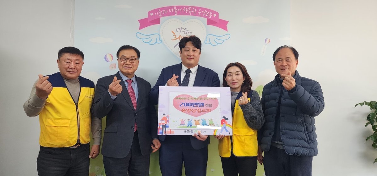 [Ytv영상스토리] 아산시 온양삼일교회는 지난 30일 온양6동 행정복지센터를 방문해 온양6동 행복키움추진단에 취약계층 지원을 위한 현금 200만 원을 기탁했다.
