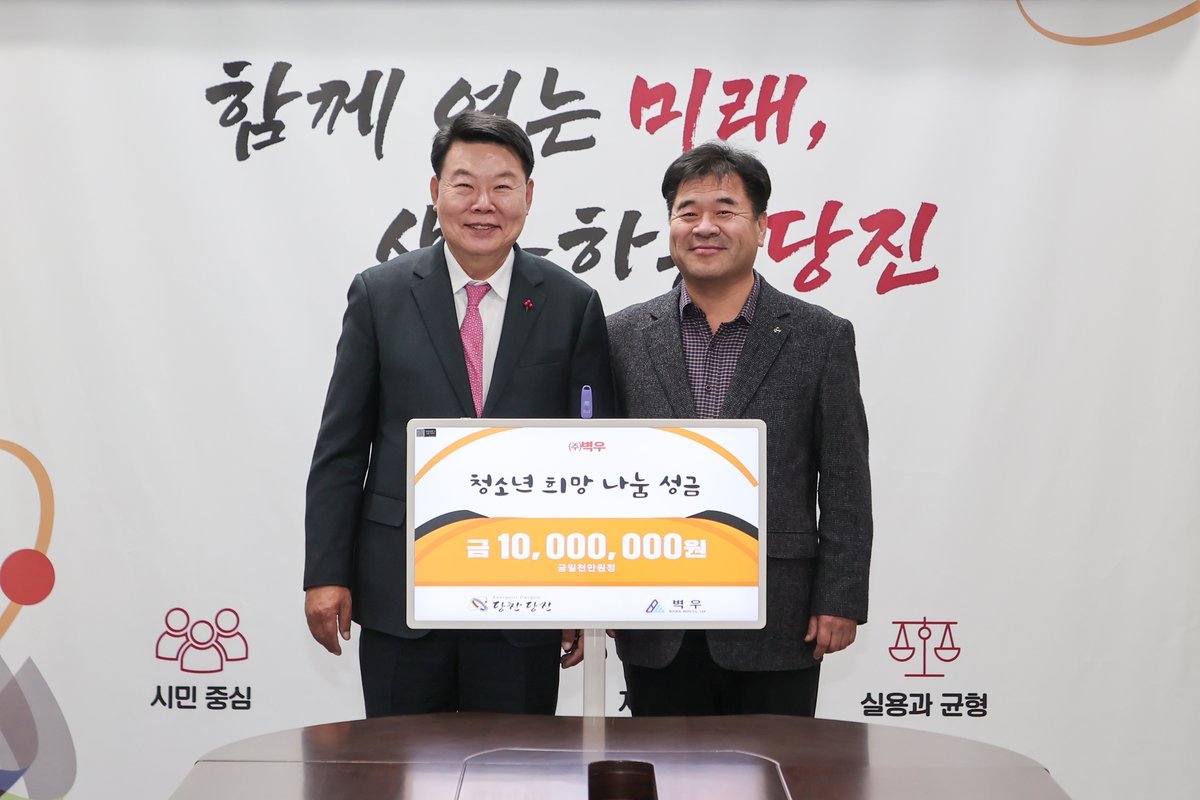㈜벽우, 당진시에 청소년 이웃돕기 성금 1천만 원 기탁 (당진시 제공)