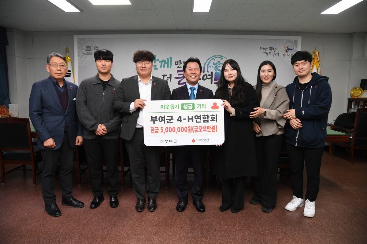 [Ytv영상스토리] 부여군 농업의 미래를 이끌어가는 청년 농업인 학습단체인 부여군 4-H 연합회가 연말을 맞아 어려운 이웃을 위한 이웃돕기 성금 500만 원을 기탁했다고 2일 밝혔다.