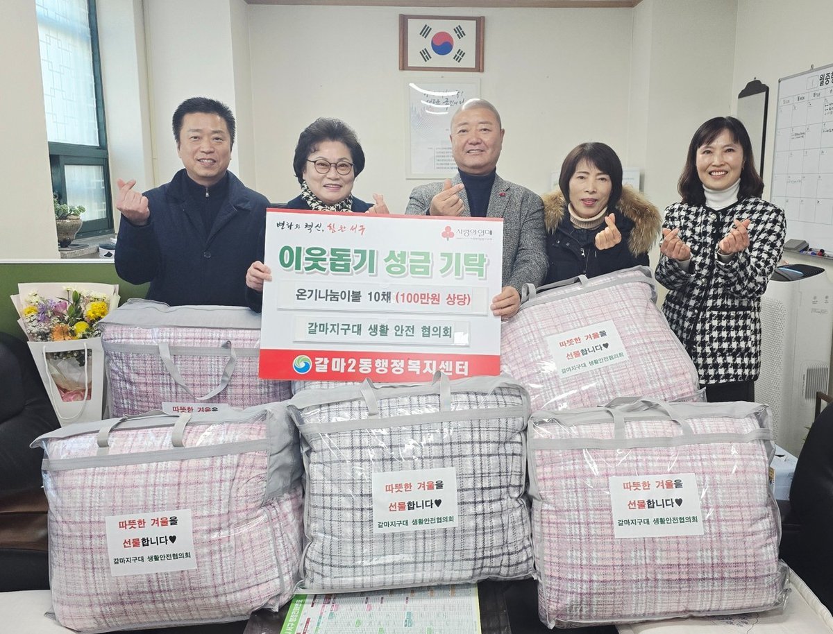 갈마지구대 생활안전협의회는 겨울철 한파에 대비한 이불 10채를 갈마2동 행정복지센터에 전달했다.