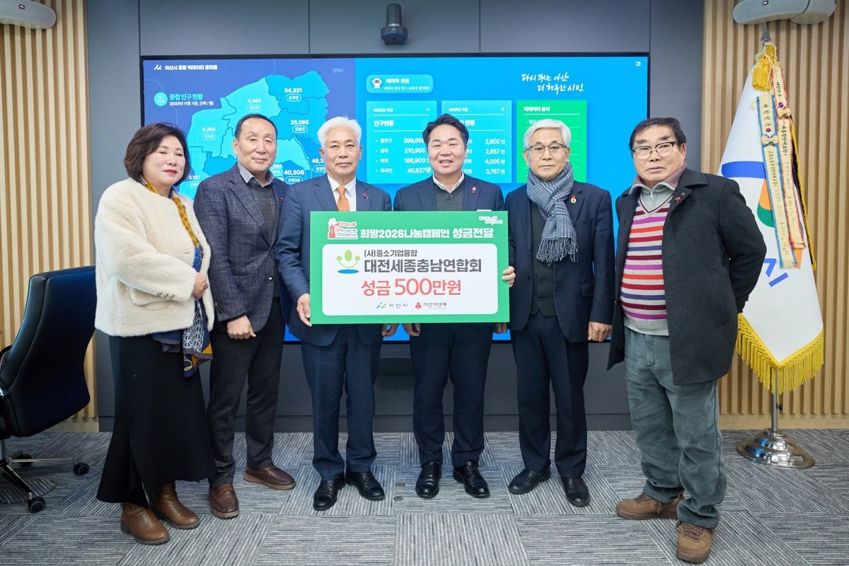 [Ytv영상스토리] 중소기업융합 대전세종충남연합회이 지난 5일 아산시를 방문해 ‘희망 2026 나눔캠페인’ 성금 500만 원을 기탁하며 지역사회에 따뜻한 울림을 전했다.