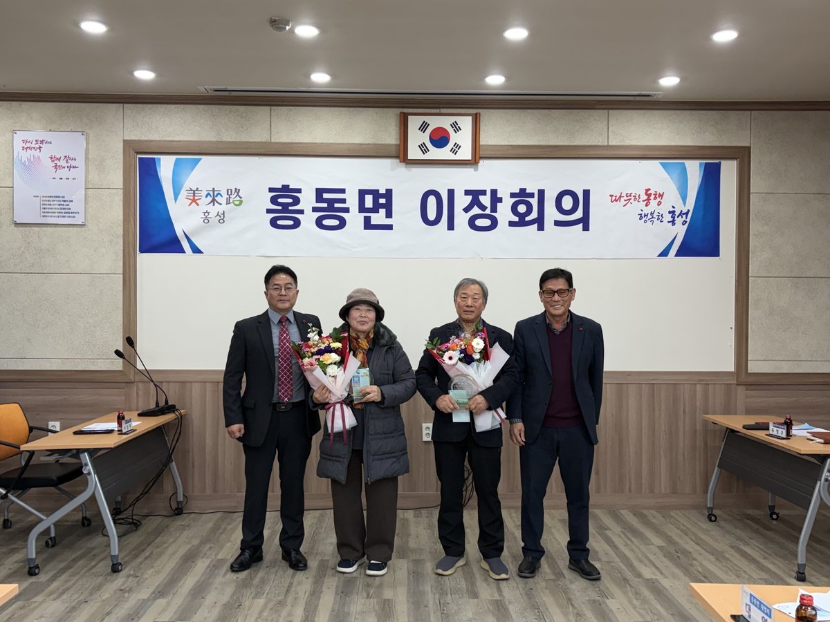 이날 회의에서 홍동면은 이임하는 4개 마을 이장님에 대해 감사패를 전달하며 그동안의 노고에 감사의 뜻을 표했다.