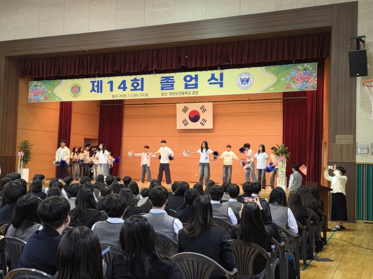 [Ytv영상스토리] 대전도안중학교는 1월 7일 교내 강당에서 제14회 졸업식을 개최하고, 3년간의 중학교 과정을 성실히 마친 졸업생들의 새로운 출발을 축하했다.