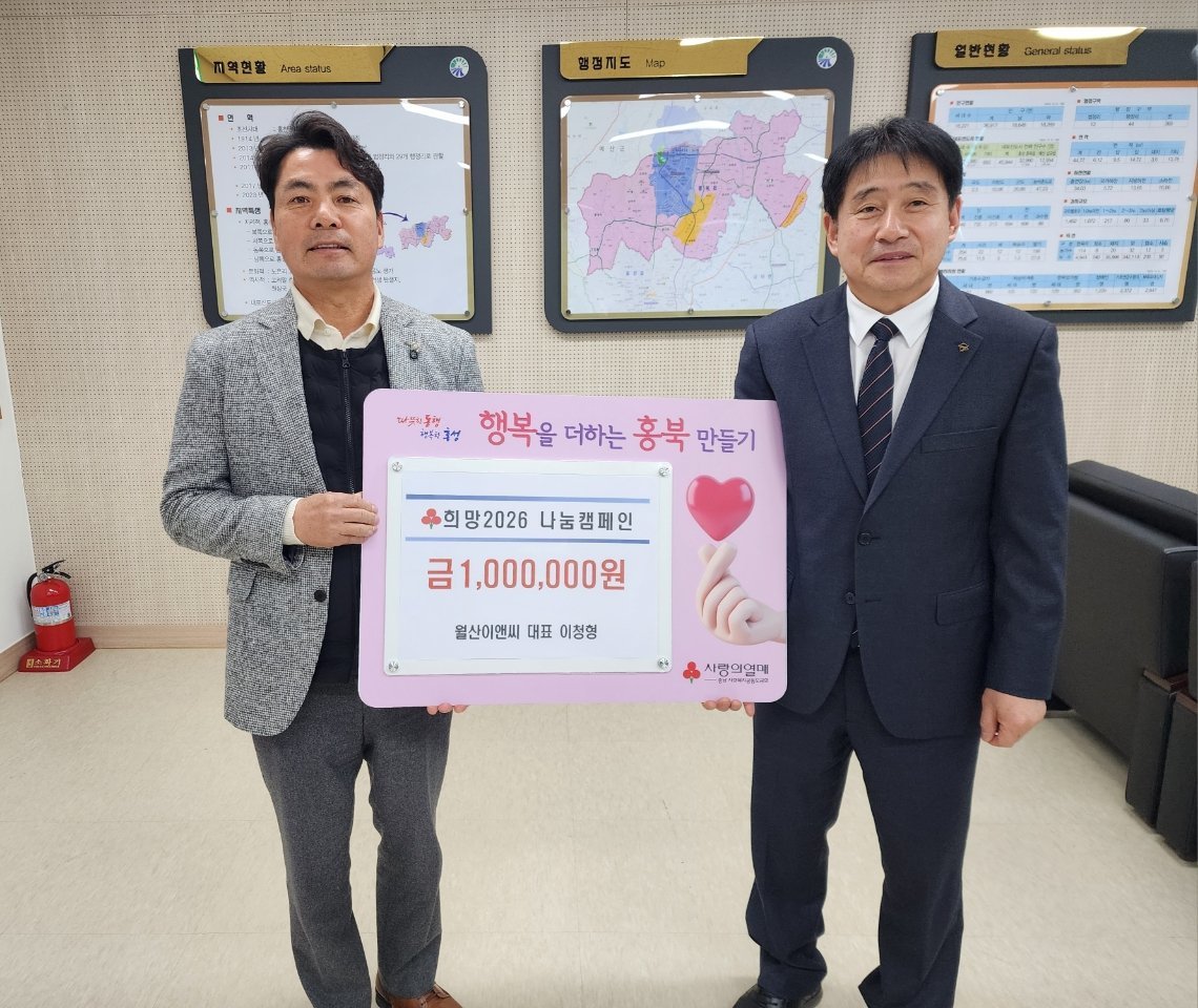 [Ytv영상스토리] 홍성군은 ㈜월산이앤씨가 지난 13일, 지역사회 이웃돕기 실천의 일환으로 희망2026 나눔캠페인에 성금 100만 원을 기탁했다고 밝혔다.