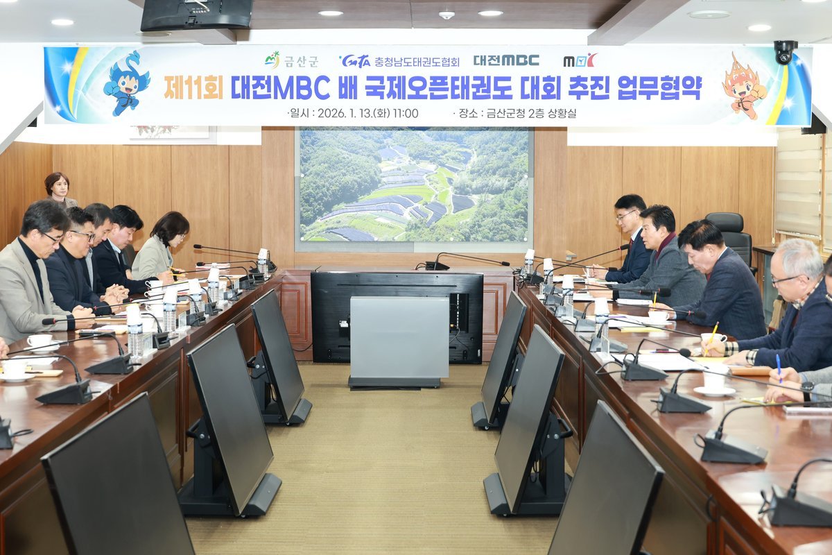 [Ytv영상스토리] 금산군은 지난 13일 군청 2층 상황실에서 제11회 대전엠비씨배 국제오픈태권도대회 유치를 위해 대전엠비씨, 충남태권도협회, 엠비씨국제오픈태권도조직위원회와 업무협약을 체결했다.
