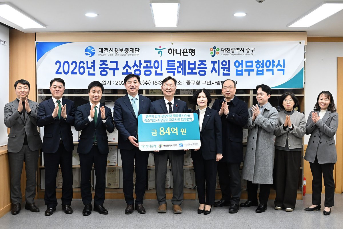 [Ytv영상스토리] 대전 중구는 지난 2024년과 2025년에 이어 올해에도 중구 관내 소상공인 경영안정자금 지원을 위해 대전신용보증재단, 하나은행과 협약을 맺고 총 84억 원 규모의 소상공인 특례 보증을 지원한다고 15일 밝혔다.