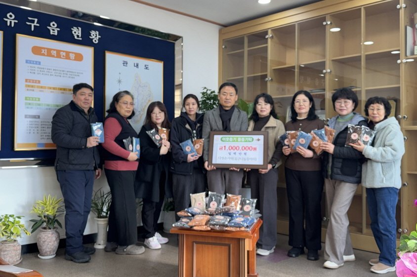 박원규 유구읍장은 “추운 계절을 맞아 따뜻한 마음까지 함께 전해주신 ‘다섯손가락’회원들께 감사드린다”며 “기탁해 주신 물품은 꼭 필요한 분들께 소중히 전달하겠다”고 말했다.
