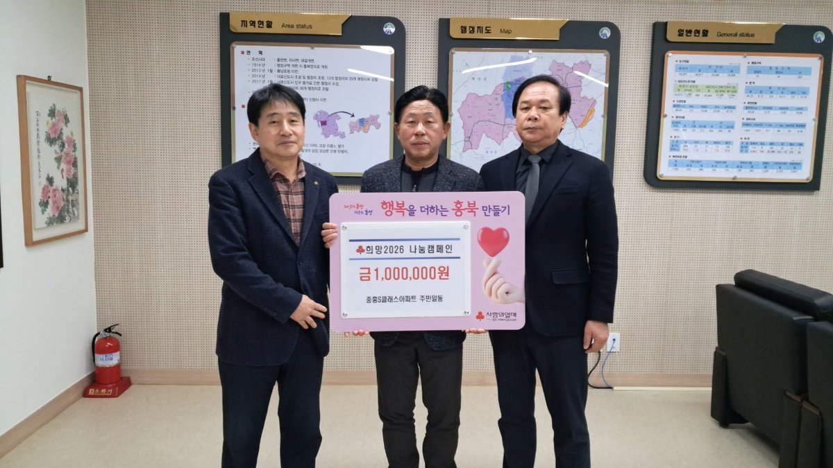 [Ytv영상스토리] 홍성군 홍북읍행정복지센터는 지난 16일 중흥S클래스아파트로부터 어려운 이웃을 돕기 위한 성금 100만원을 기탁받았다고 밝혔다.