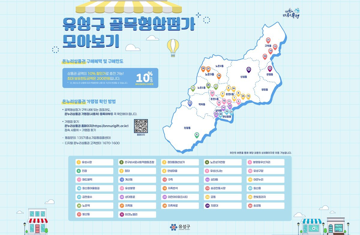 정용래 유성구청장은 "이번 지정 요건 완화로 생활권 중심의 골목형상점가 지정이 확대될 것으로 기대한다"며 "골목형상점가를 중심으로 소상공인의 매출 증대와 고객 유입 확대를 위한 상권 활성화 여건을 강화하겠다"고 말했다.