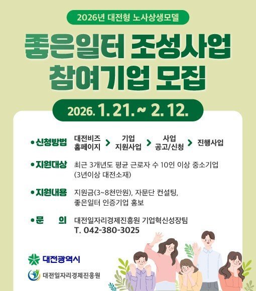 [Ytv영상스토리] 대전시는 1월 21일부터 2월 12일까지 대전형 노사상생 모델‘2026년 좋은 일터 조성사업’에 참여할 12개 기업을 공개 모집한다.