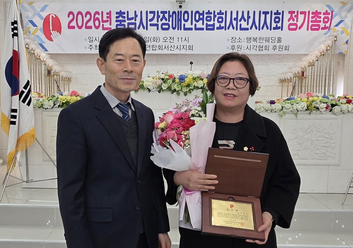 [Ytv영상스토리] 서산시의회 가선숙 의원이 1월 20일 열린 '2026년 충남시각장애인연합회 서산시지회 정기총회'에서 공로패를 받았다.