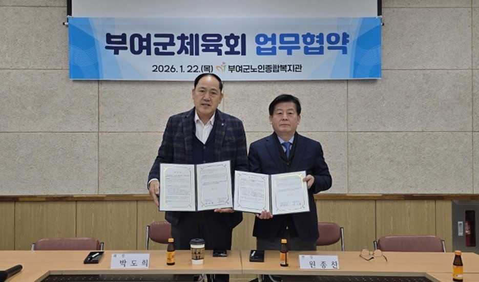 [Ytv영상스토리] 부여군노인종합복지관과 부여군체육회는 부여군노인종합복지관에서 어르신 생활체육 활성화와 건강 증진을 위한 업무협약을 체결했다고 27일 밝혔다.