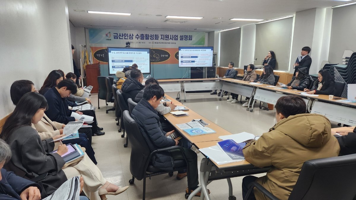 이를 위해 진흥원은 지난 27일 진흥원 2층 대회의실에서 관내 인삼 관련 기업을 대상으로 2026년 금산인삼 수출활성화 지원사업 설명회를 개최하고 수출 중심의 산업 회복 전략과 사업 추진 방향을 공유했다.