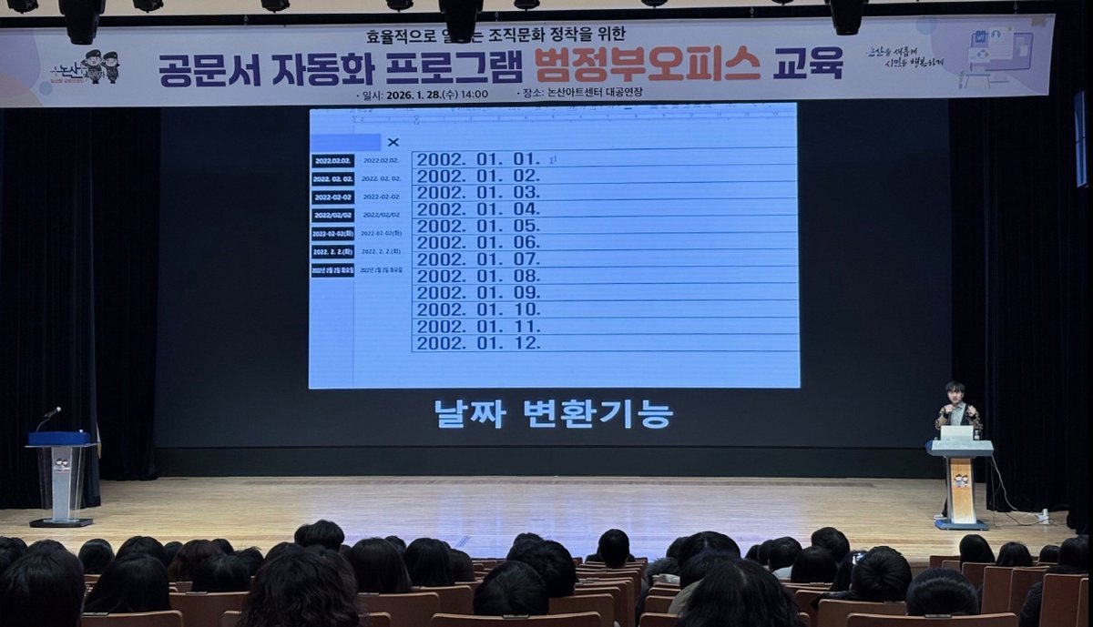 [Ytv영상스토리] 논산시는 지난 28일 논산아트센터 대공연장에서 저연차 공무원을 대상으로 공문서 자동화 프로그램‘범정부오피스’교육을 실시했다.