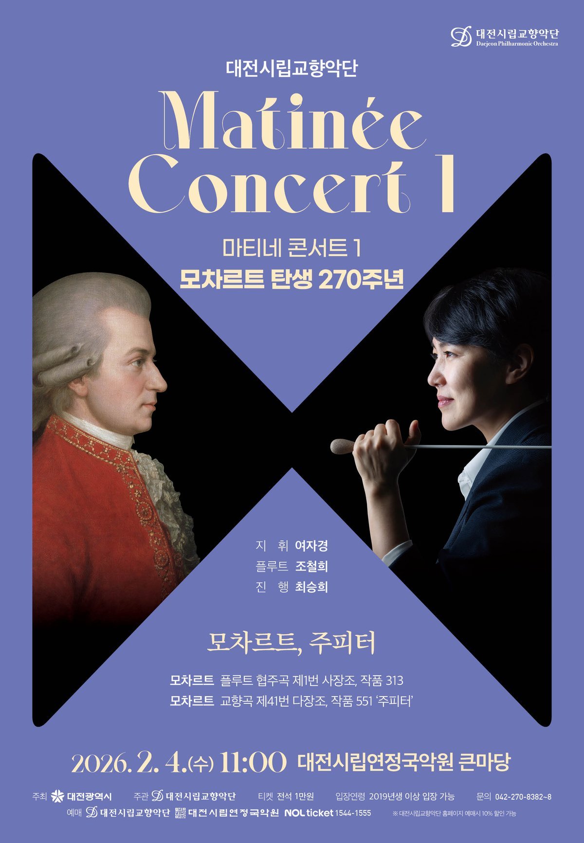첫 무대는 대전시립교향악단의 플루트 수석 조철희가 협연하며‘플루트 협주곡 제1번 사장조’를 선보인다.