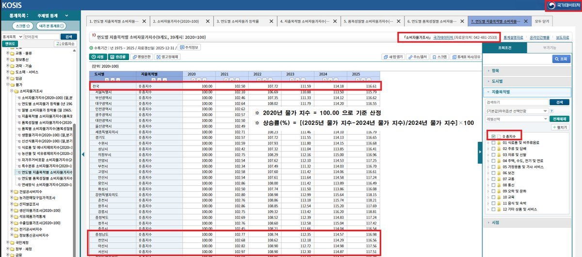 일자리경제과 소비자물가지수 자료-출처 KOSIS 국가통계포털