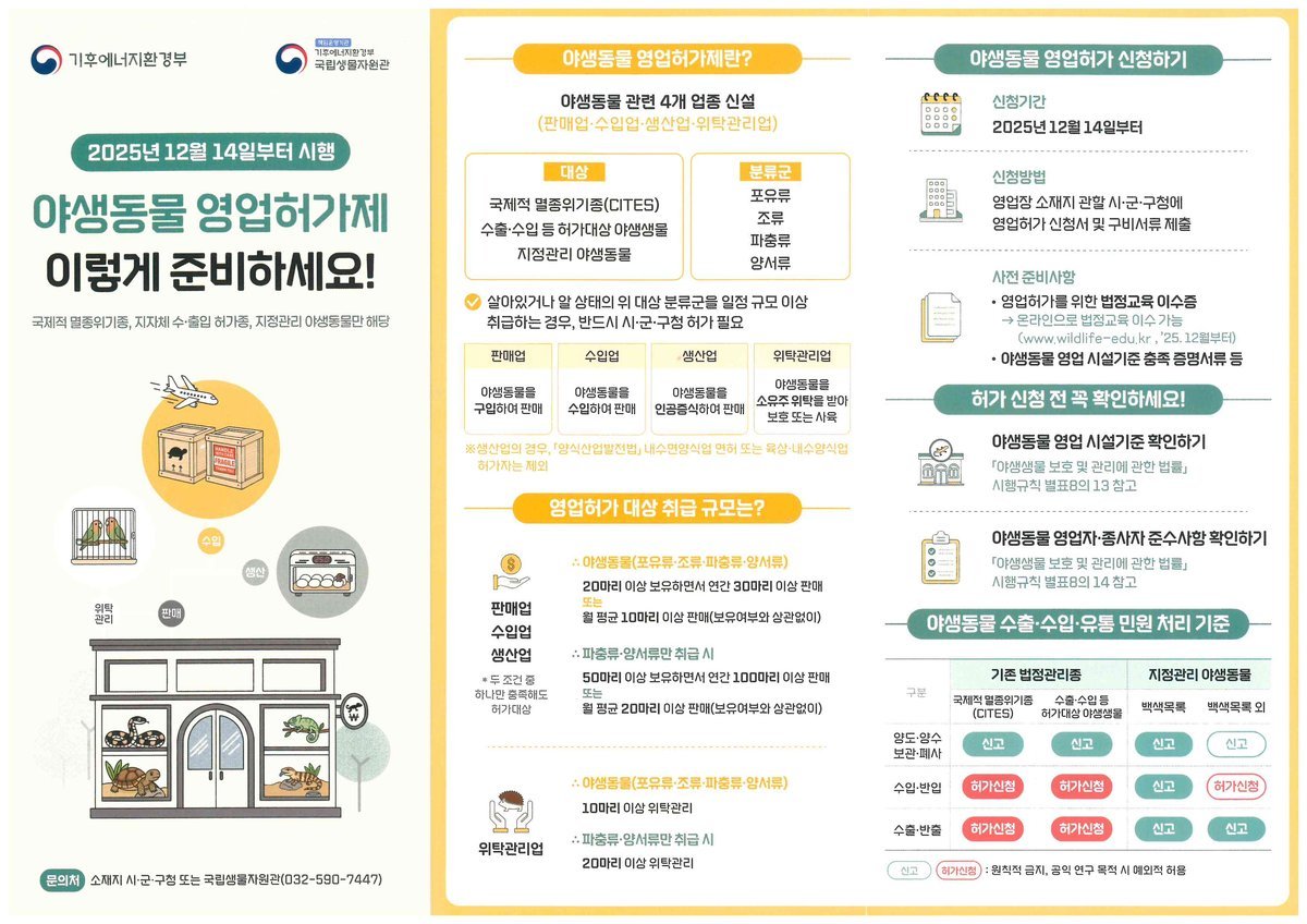 야생동물 영업허가 홍보문