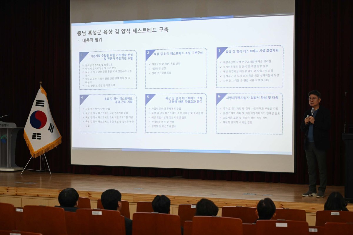 [Ytv영상스토리] 홍성군은 충청남도 균형발전사업과 해양수산부 국책과제와 연계해 추진 중인 육상 김 양식 테스트베드 조성 사업과 관련해, 기본계획 수립을 위한 주민설명회를 지난 29일 홍성군 농업기술센터에서 개최했다고 밝혔다.
