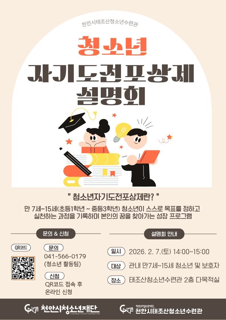 설명회와 관련한 자세한 사항은 천안시태조산청소년수련관으로 문의하면 된다.
