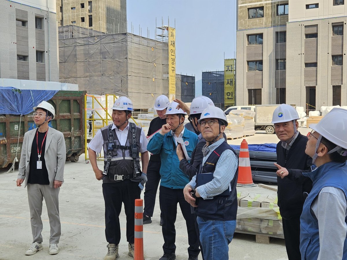 서철모 서구청장이 직원들과 함께 공사 현장 안전 점검을 하고 있다 자료사진 대전서구 제공