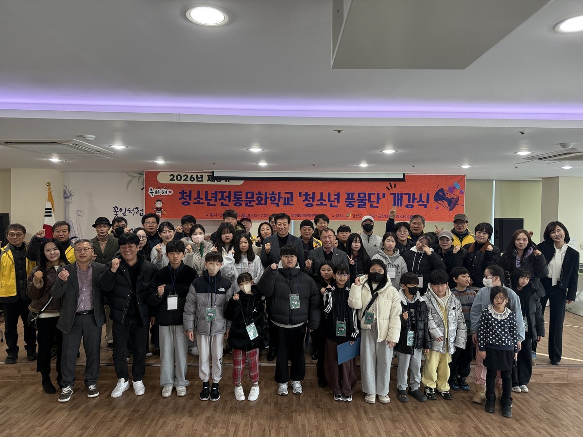 [Ytv영상스토리] 금산군은 1월 31일 금산읍 청산회관 여성창의문화센터에서 지역 청소년들의 전통문화 계승과 예술적 감수성 함양을 위한 2026년 제3기 청소년전통문화학교 청소년 풍물단 개강식을 성료했다.