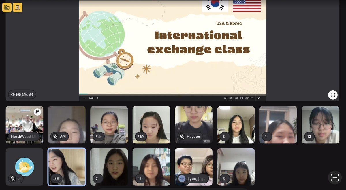 이번 국제교류수업은 지난해 11월 22일 새움초를 방문한 미국 노스우드 중학교 밸러리 교사와 학생들, 그리고 새움초 5~6학년 국제교류 동아리 학생들 간의 교류를 지속·확대하기 위해 기획됐다.