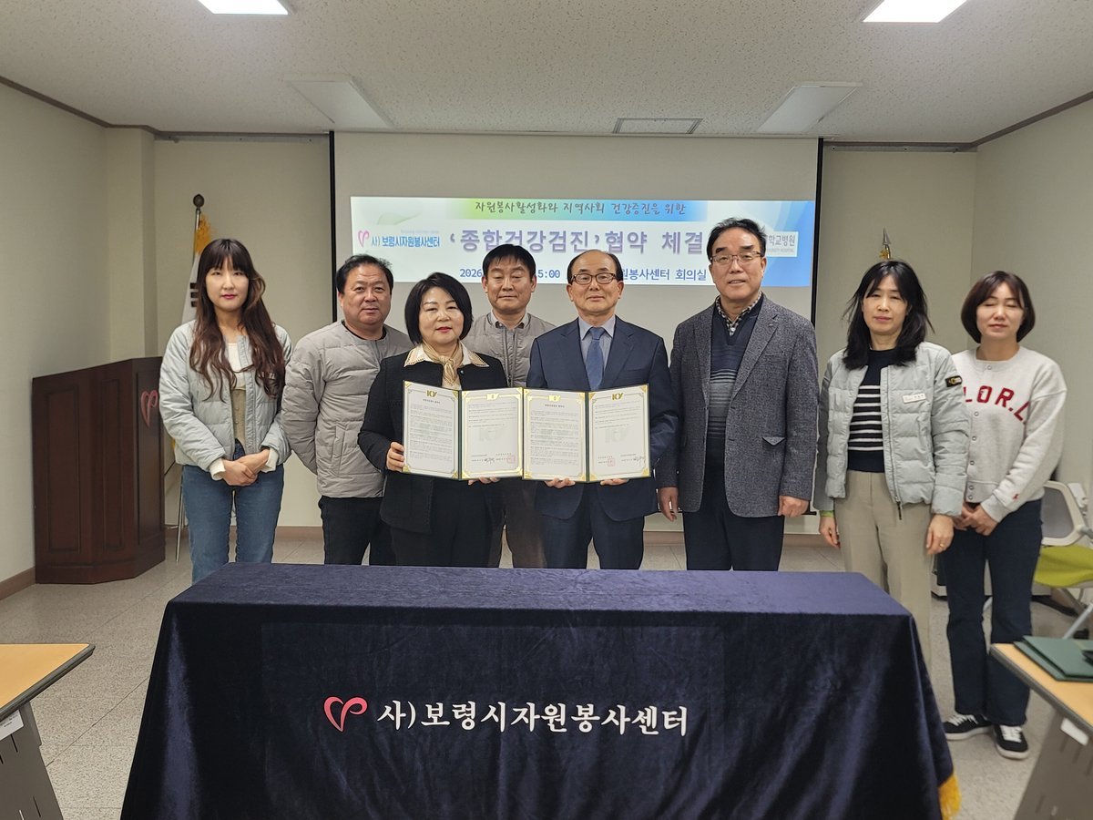 [Ytv영상스토리] 보령시자원봉사센터는 3일 우수자원봉사자들의 건강관리를 위해 자원봉사센터 회의실에서 건양대학교병원과 ‘종합건강검진 협약’을 체결했다.