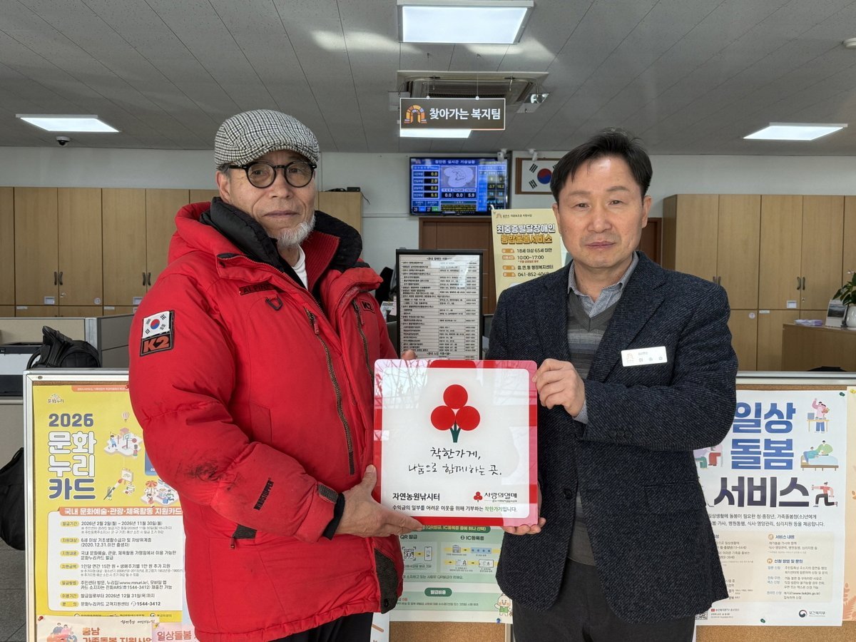 이승습 정안면장은 “모두가 어려운 시기에 나눔에 동참해 주신 자연농원낚시터에 감사드린다”며 “착한가게를 통해 정안면 전반에 나눔 문화가 더욱 확산되길 기대한다”고 전했다.