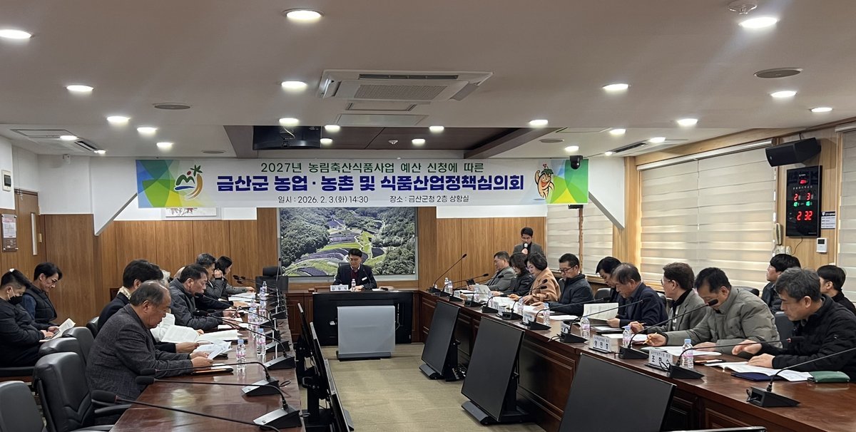 [Ytv영상스토리] 금산군은 지난 3일 군청 상황실에서 농업·농촌 및 식품산업정책 심의위원과 관계공무원 등 약 40명이 참석한 가운데 2027년 농림사업 예산 신청에 따른 농업·농촌 및 식품산업정책심의회를 개최했다.
