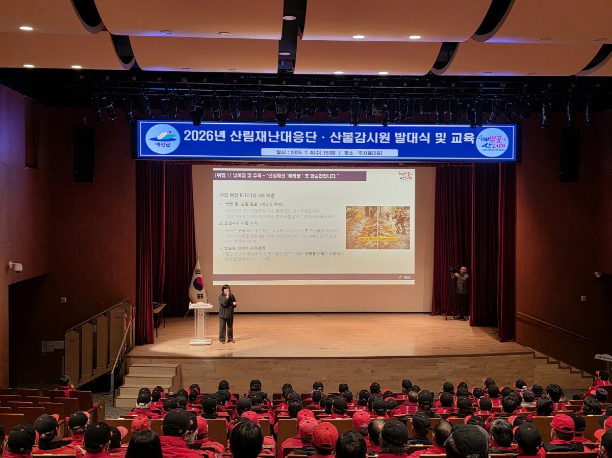 [Ytv영상스토리] 예산군은 산불 등 산림재난에 선제적으로 대응하기 위해 지난 4일 추사홀에서 ‘2026년 산림재난대응단 및 산불감시원 발대식’을 개최하고 본격적인 산불 예방·대응 활동에 돌입했다.