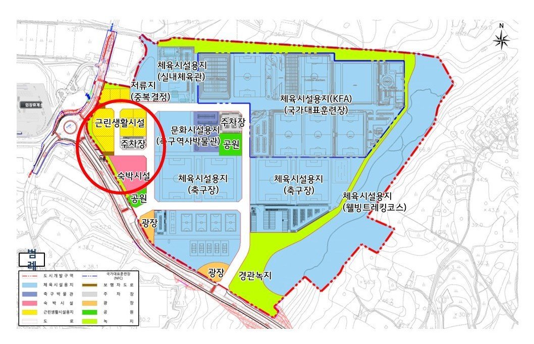 지난해 9월 대한축구협회가 이전을 완료하고 국가대표 훈련시설이 가동되면서 인적·물적 유입이 본격화되고 있다 특히 올 상반기 코리아풋볼파크로 직접 연결되는 진입도로가 개통을 앞두고 있어 접근성이 획기적으로 개선될 전망이다.