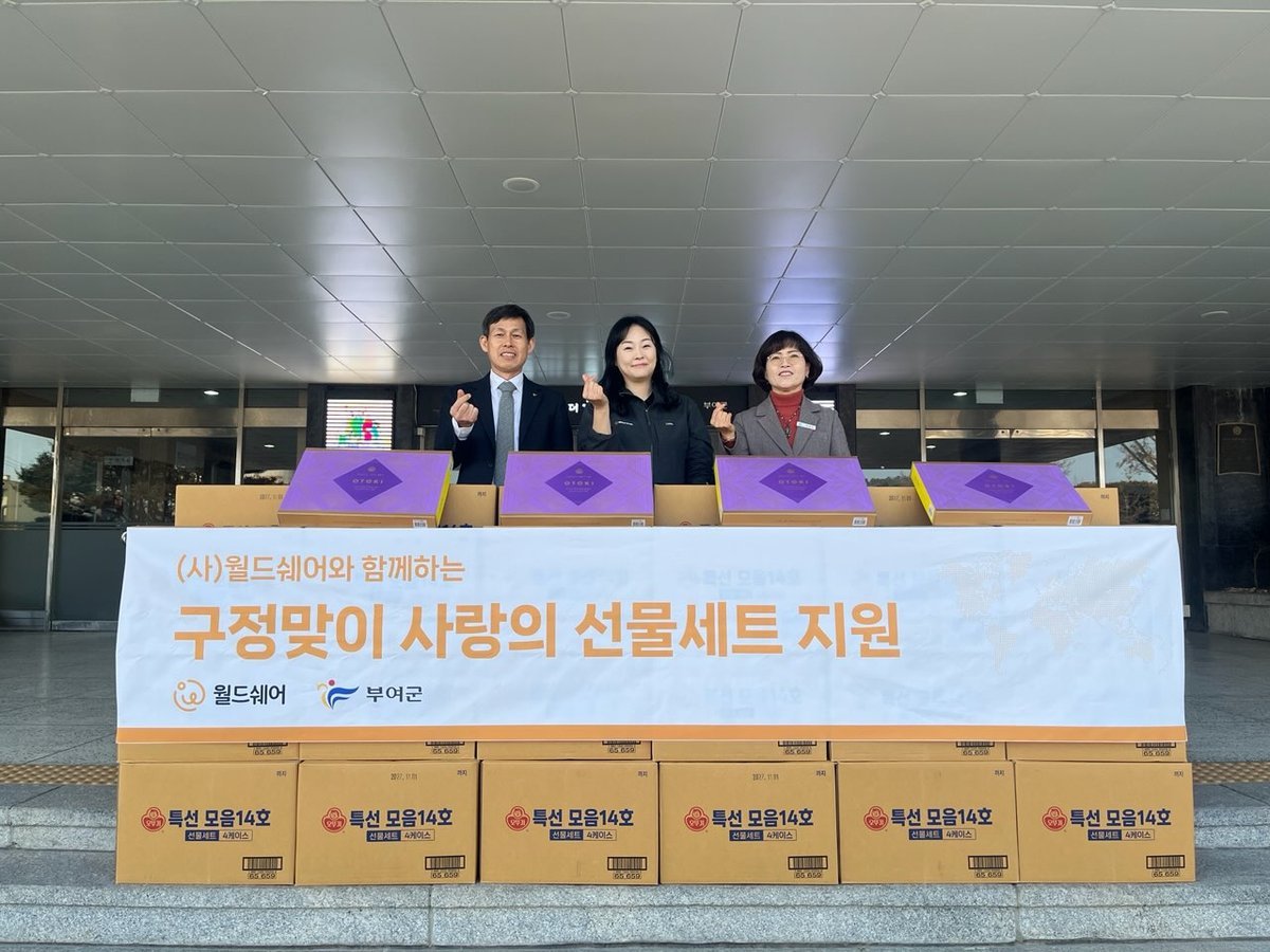 월드쉐어, 부여군에 선물 세트 150개 기탁 (부여군 제공)