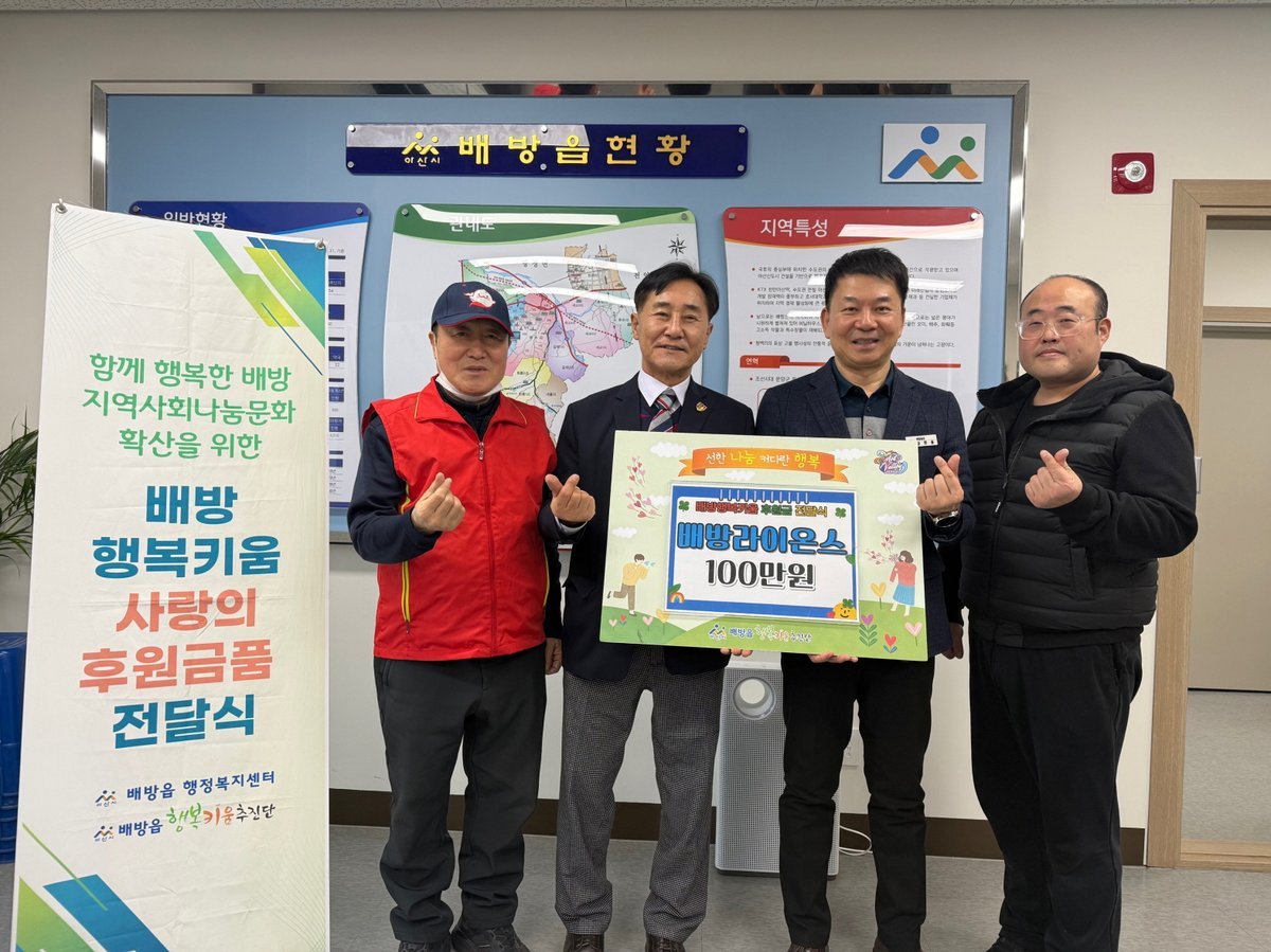 강한용 읍장은 "지역사회의 어려운 이웃을 위한 배방라이온스클럽의 지원에 진심으로 감사드린다"고 전했다.