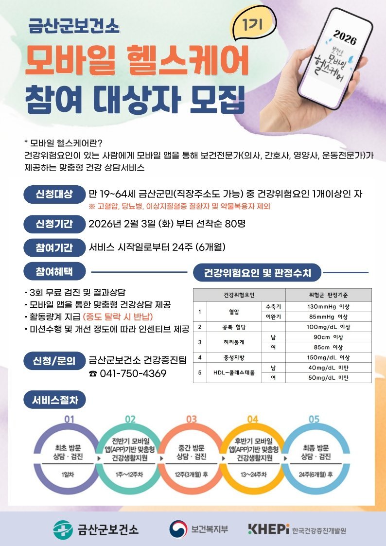 금산군보건소, 2026년 모바일 헬스케어 1기 대상자 모집 (금산군 제공)