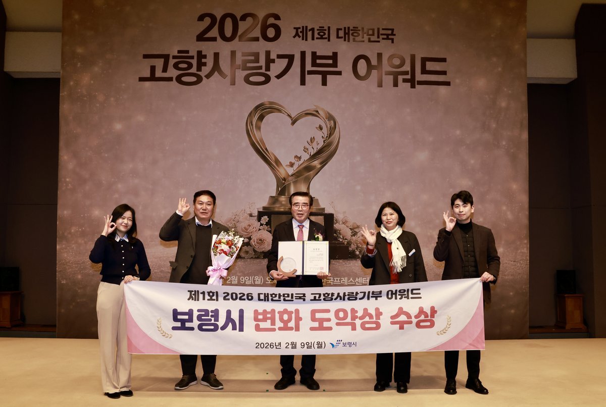 [Ytv영상스토리] 보령시는 ‘제1회 2026 대한민국 고향사랑기부 어워드’에서 시 부문 변화도약상을 수상했다고 밝혔다.