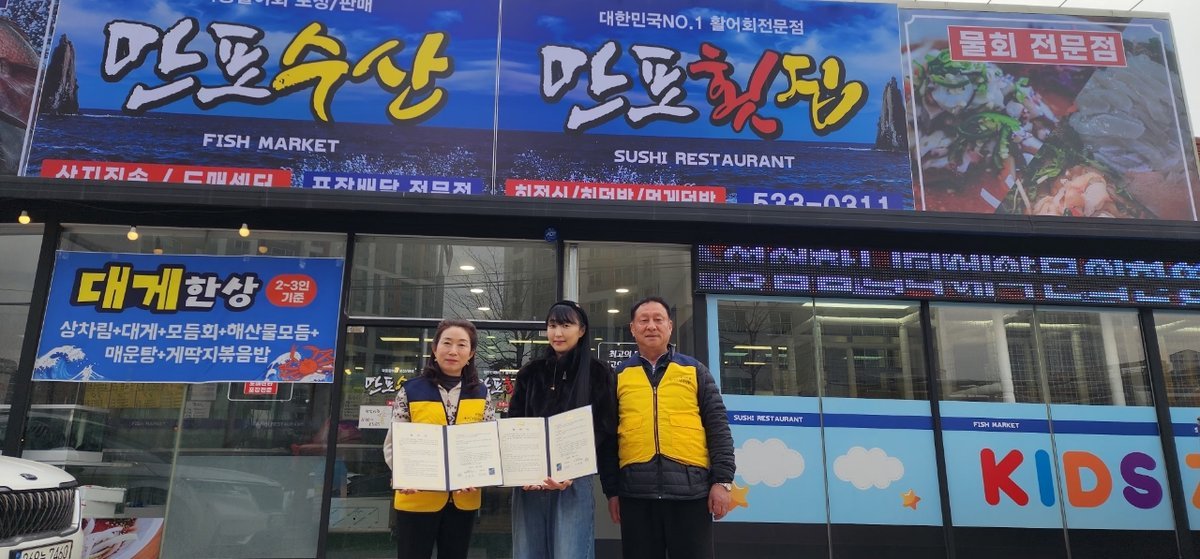 조은주 만포횟집 사장은 "작은 나눔이지만 도움이 필요한 이웃에게 힘이 되길 바란다"며 "앞으로도 지속적으로 어려운 분들을 위해 나눔을 실천하겠다"고 전했다.