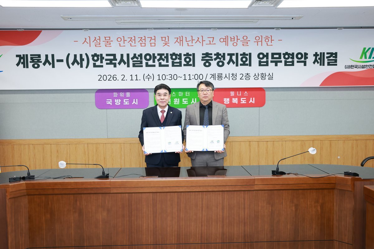[Ytv영상스토리] 충남 계룡시는 11일 한국시설안전협회 충청지회와 ‘계룡시 시설물 안전점검 및 재난사고 예방을 위한 업무협약’을 체결했다고 밝혔다.