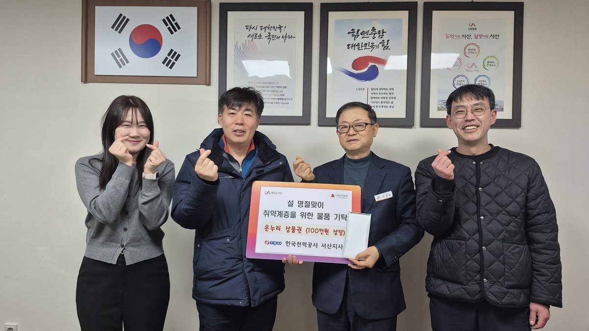 [Ytv영상스토리] 한국전력공사 서산지사에서는 10일 직원들이 자발적으로 월급의 일부를 모아 조성한 러브펀드로 설 명절을 맞아 서산시종합사회복지관에 100만원 상당의 온누리상품권을 기부해 지역사회의 어려운 이웃에게 따뜻한 마음을 전했다.